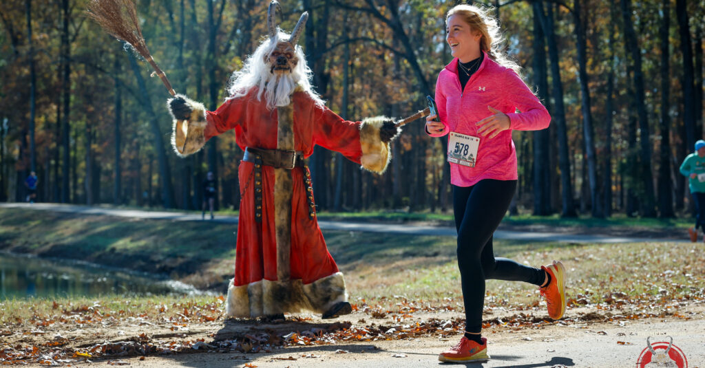 For those of you who have never done a 5k before, welcome to your first race! After you check in, make your way to the start line. Stay on the course — we’ll mark it for you — and feel free to take a walk break whenever you need to. But don’t let Krampus see you resting for too long!